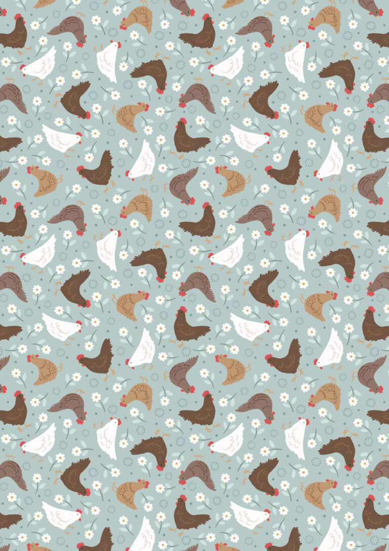 Country Croft Hens on Blue A958C by Lewis and Irene (sold in 25cm increments)