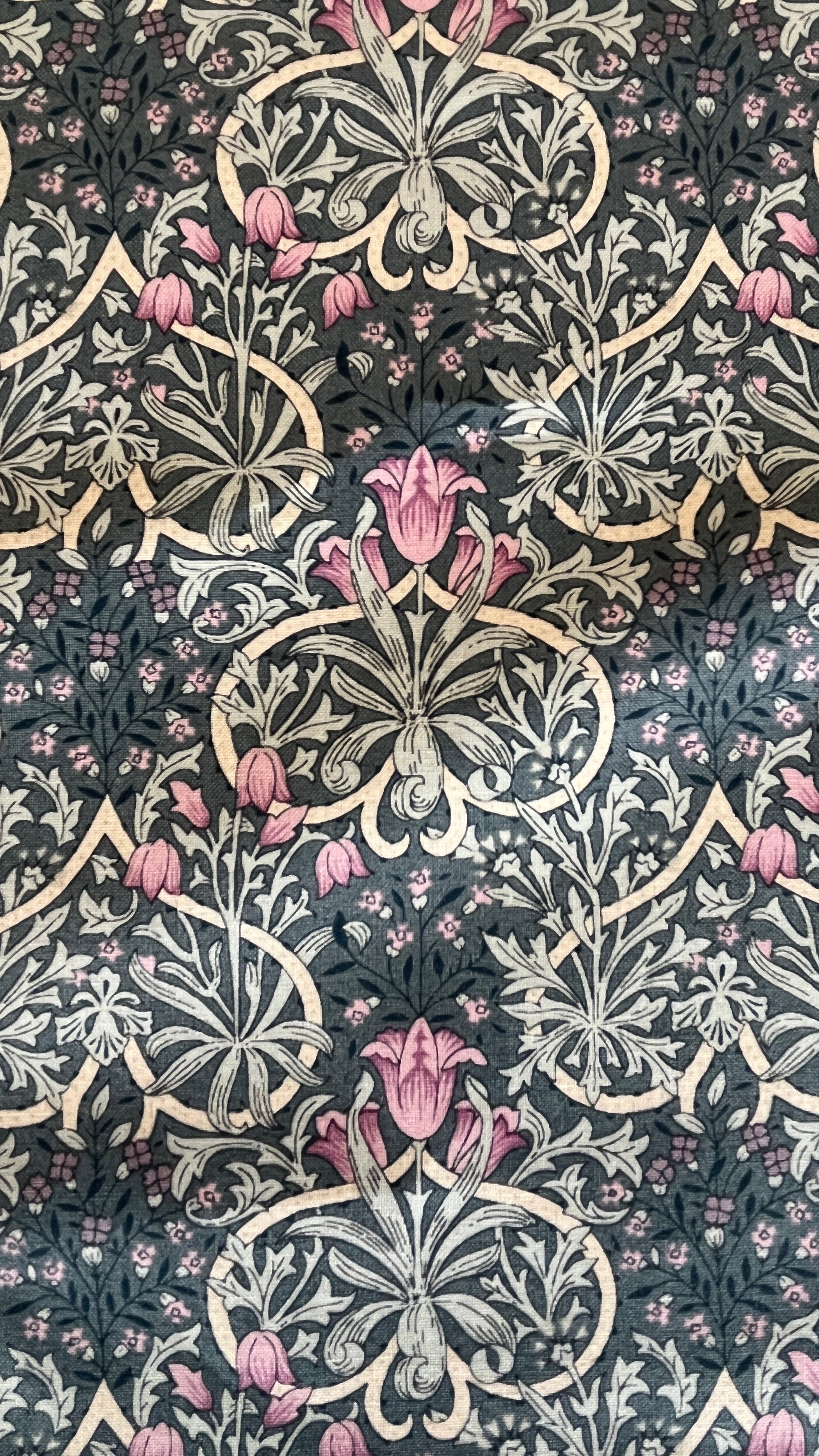 Nakamura's country floral collection draws inspiration from the Morris aesthetic, showcasing an elegant composition of hearts, intertwining vines, and botanical florals.