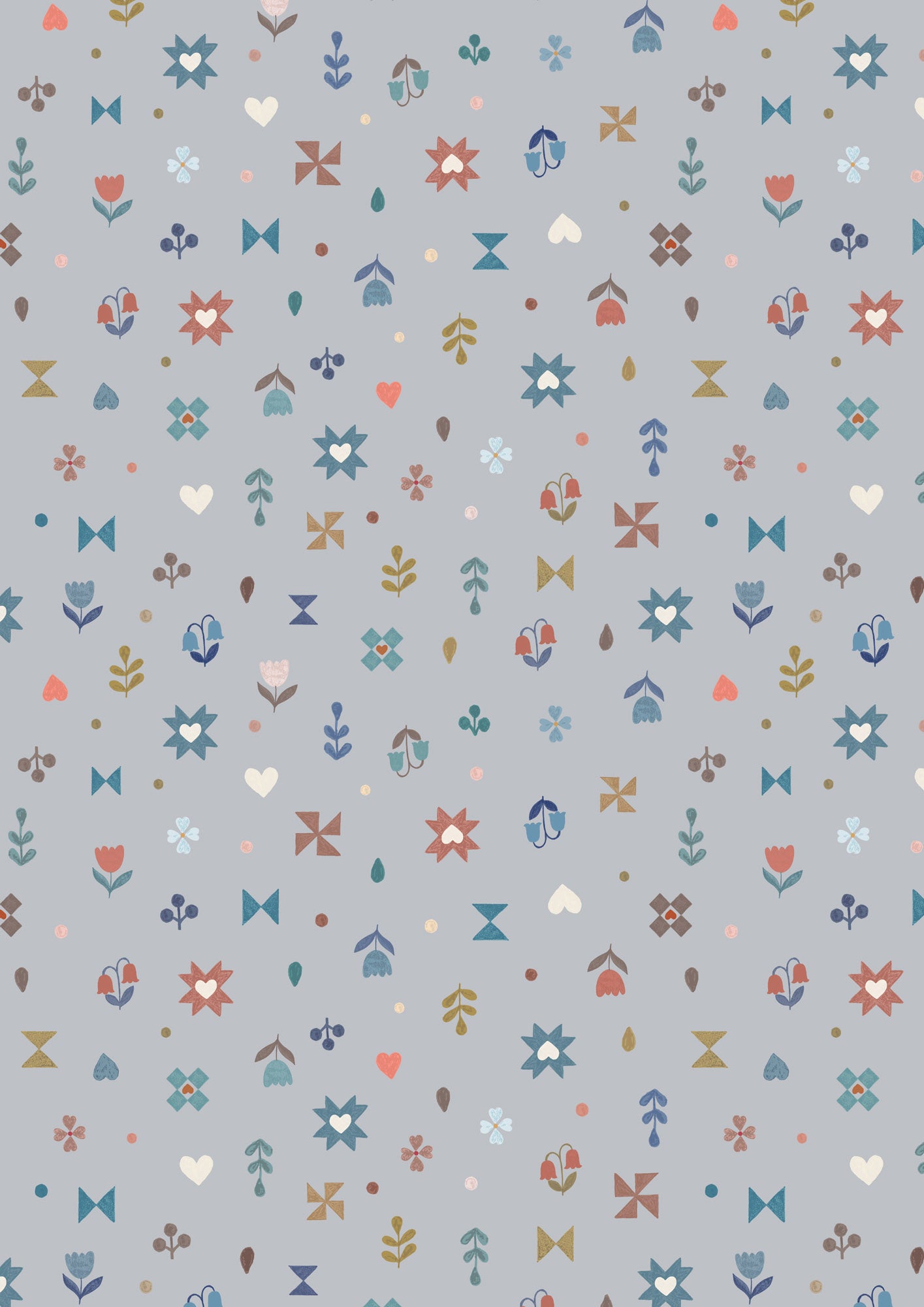 Cosy Home Hearts and Flowers Warm Grey A943B by Lewis and Irene (sold in 25cm increments)