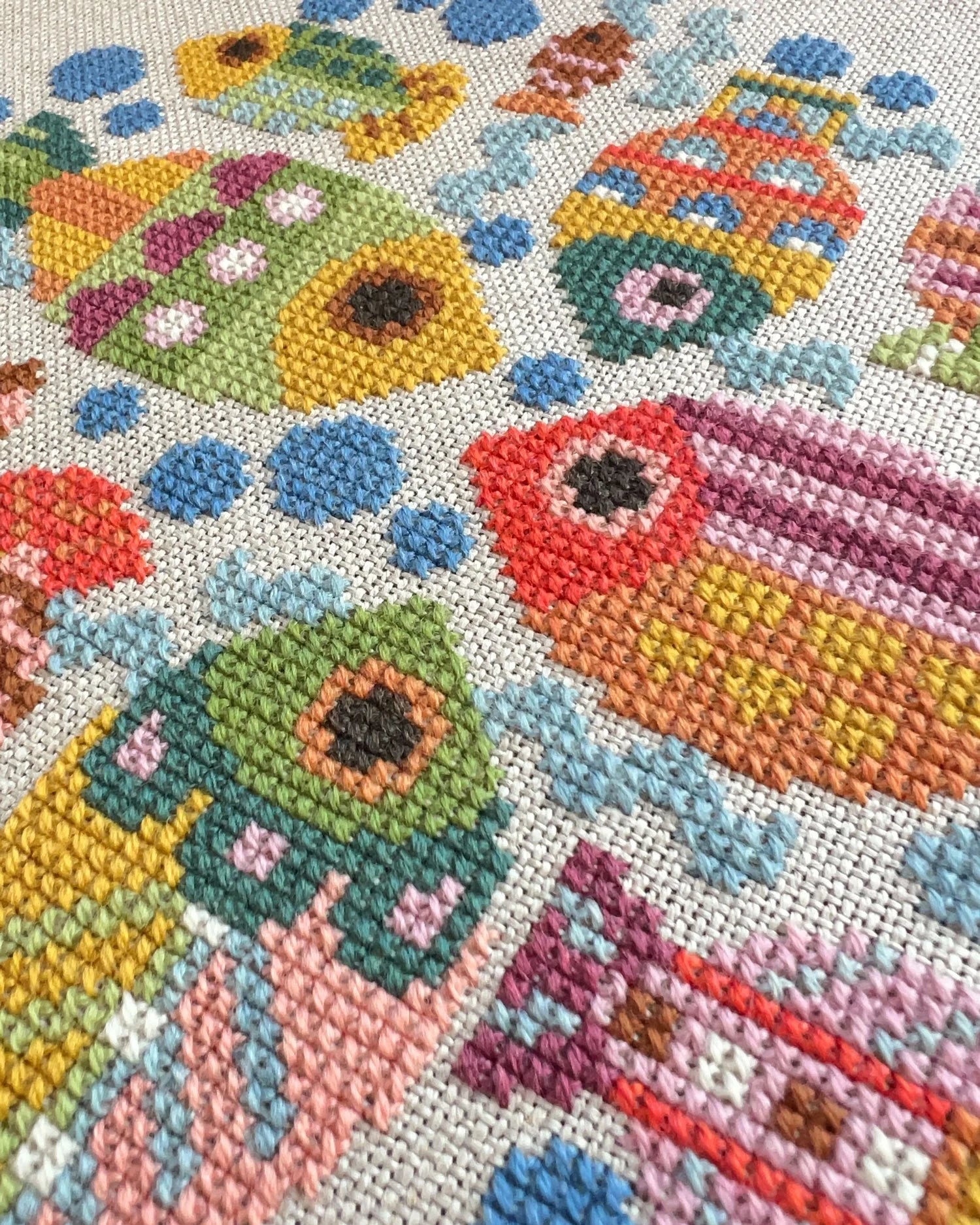 School is in session! Swimming with vibrant color and warm texture, Fish Dish is part of Satsuma Street’s new collection featuring DMC’s Eco Vita wool thread. The pattern also includes a conversion to DMC or Cosmo six strand cotton floss.