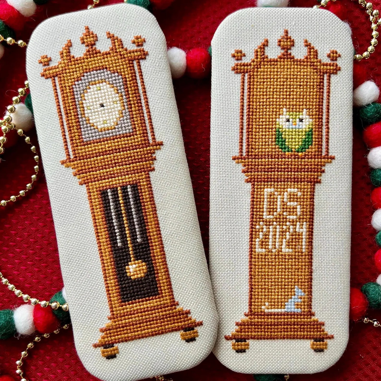 The Grandfathers Clock by December Stitches is a Christmas Tree ornament with a front and back.
