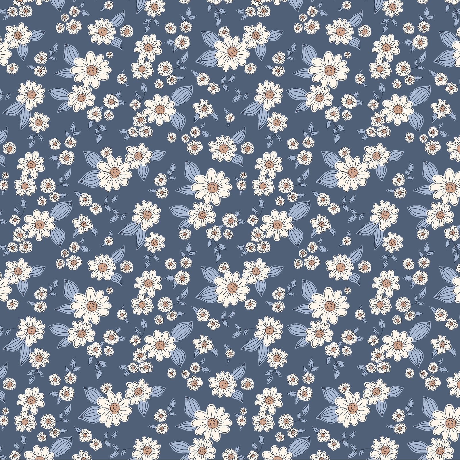 Kitten Fun Floral Dark Denim Y4567-89 by Julia Khimich for Clothworks (sold in 25cm increments)