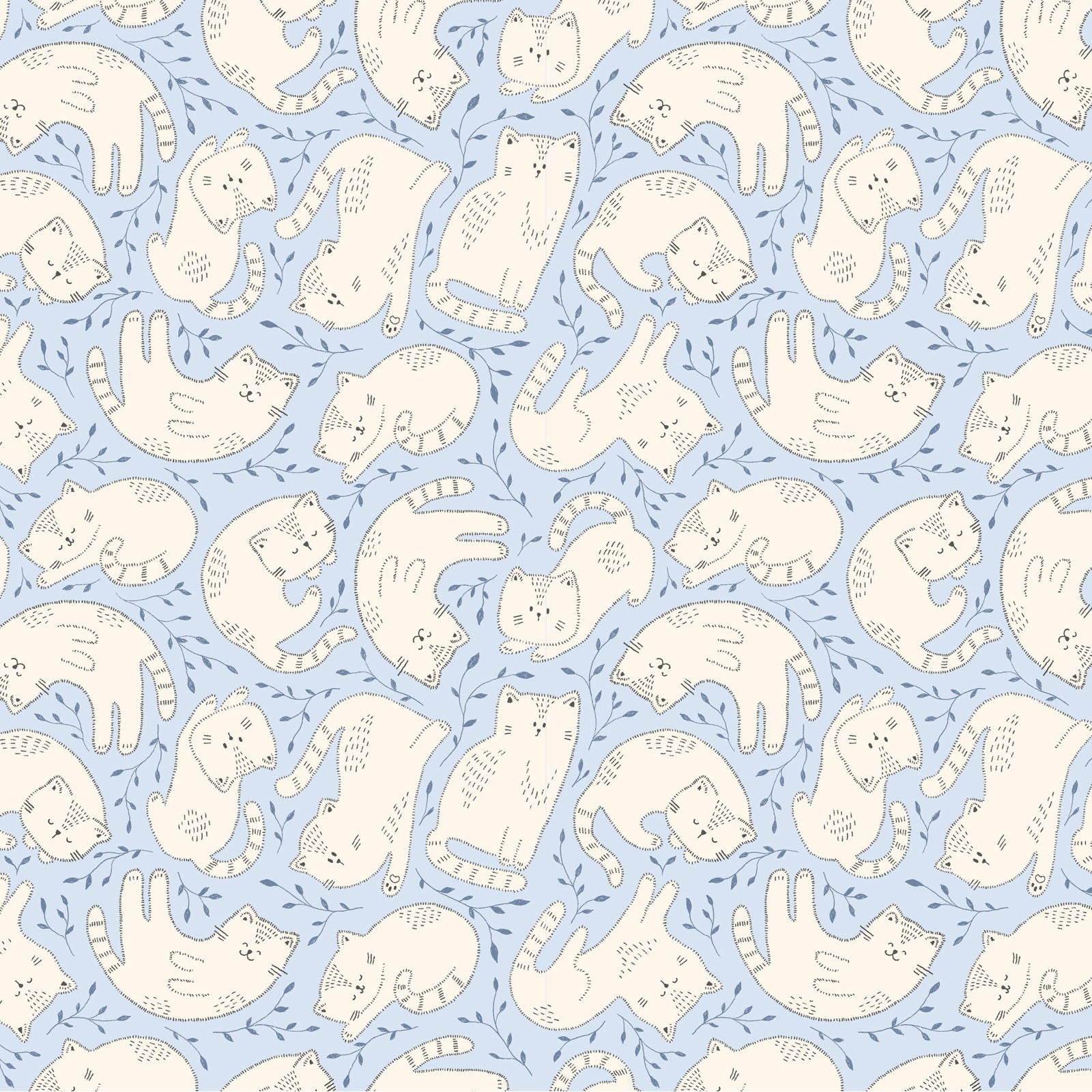 Kitten Fun Tossed Kittens Light Denim Y4569-87 by Julia Khimich for Clothworks (sold in 25cm increments)