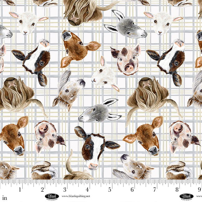 Little Seedlings Farm White Plaid with Animal Heads BQ4386001 by Moque Lee Studio for Blank Quilting (sold in 25cm increments)