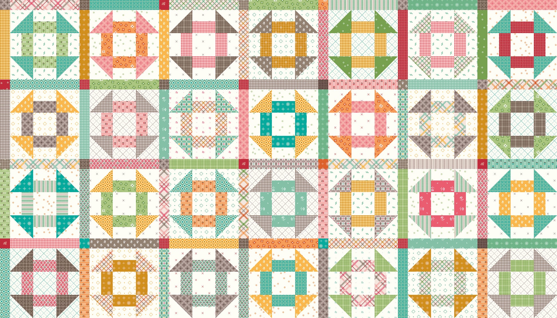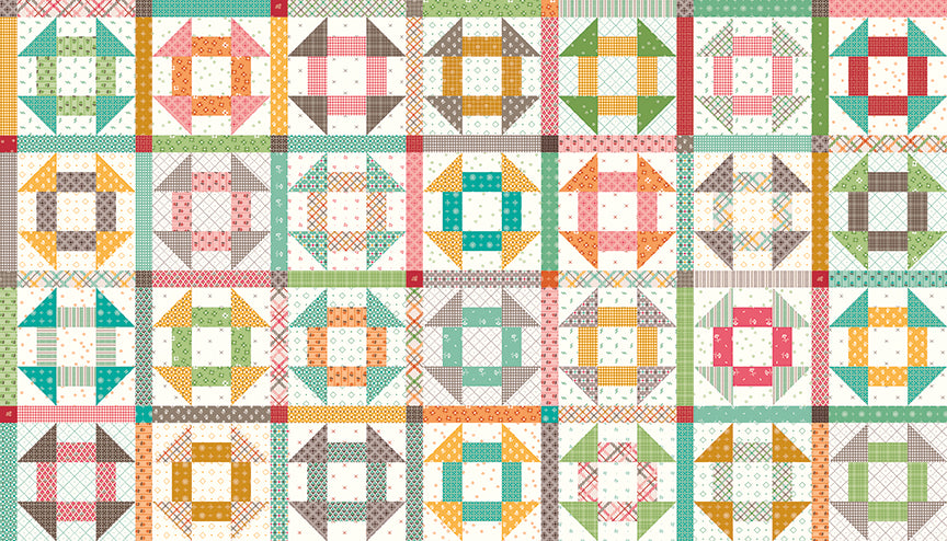 Prim by Lori Holt of Bee in my Bonnet for Riley Blake Designs is great for quilting, apparel and home decor. This print features large churn dash blocks with sashing and posts. It's 107"/108" wide to accommodate most quilt backs.