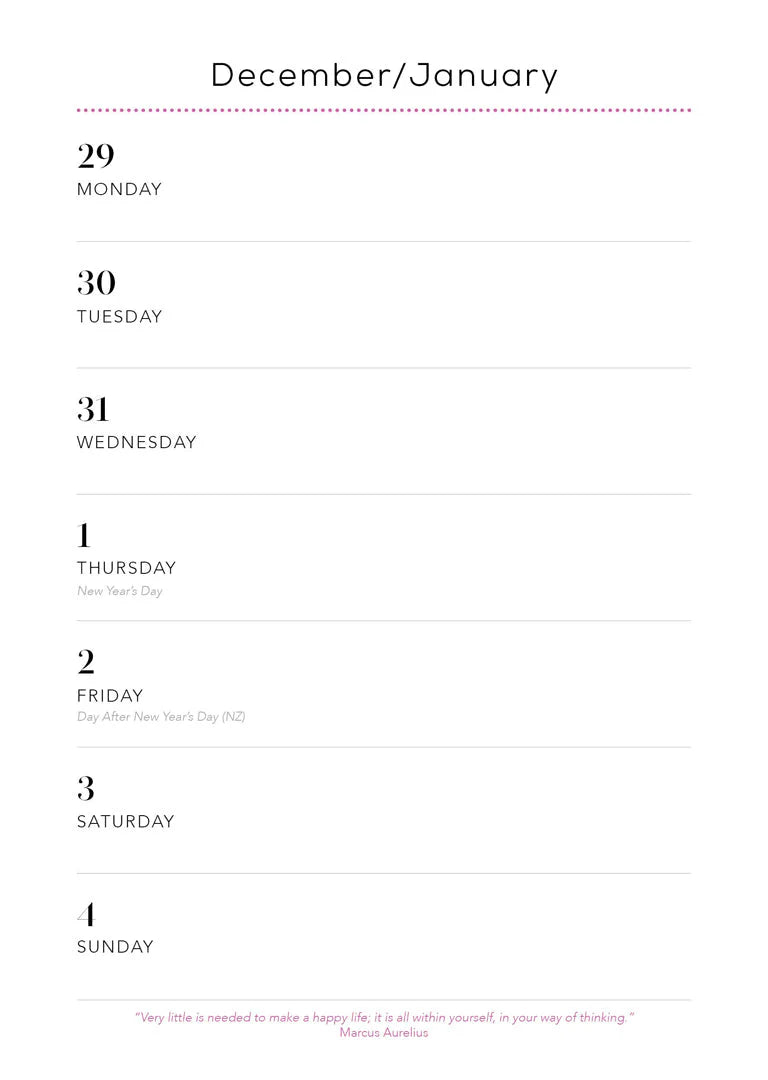 This hardcover diary has been carefully crafted and covers 12-Months. Every month of the year from January 2026 to December 2026 is included. The size of this hardcover diary is 190mm x 210mm when closed. Each week displayed in a single page begins on a Monday, and all major Public Holidays and 2026 School Term dates for Australian and New Zealand Public Schools are also included. You won't miss a beat in 2026!