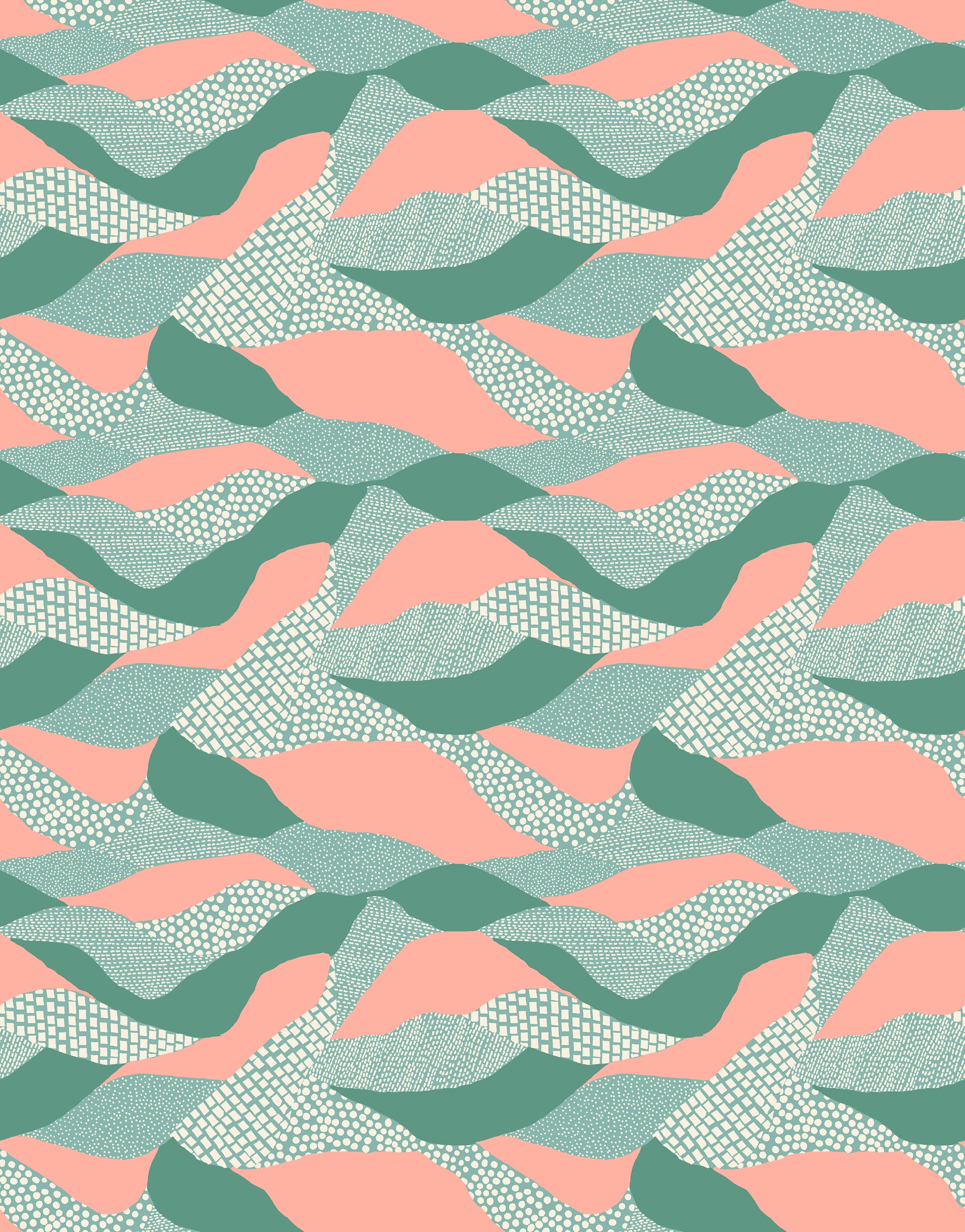 Reimagined Landscapes by Jen Hewett is an update to her first fabric collection Imagined Landscapes. Many of the prints are based on personal landmarks and scenes from around her hometown of San Franscisco with the colour palette influenced by her new home of Hudson Valley.