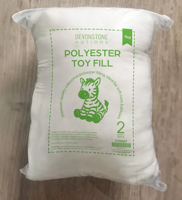 Devonstone Toy Fill comes in a re-sealable, biodegradable bag. Made from 100% high-quality polyester, this resilient and odourless plush fibre is perfect for stuffing toys, cushions, and other creative projects. It adds a lovely puffy feel and extra comfort wherever it's used. Warm hand wash. Do not dry clean
