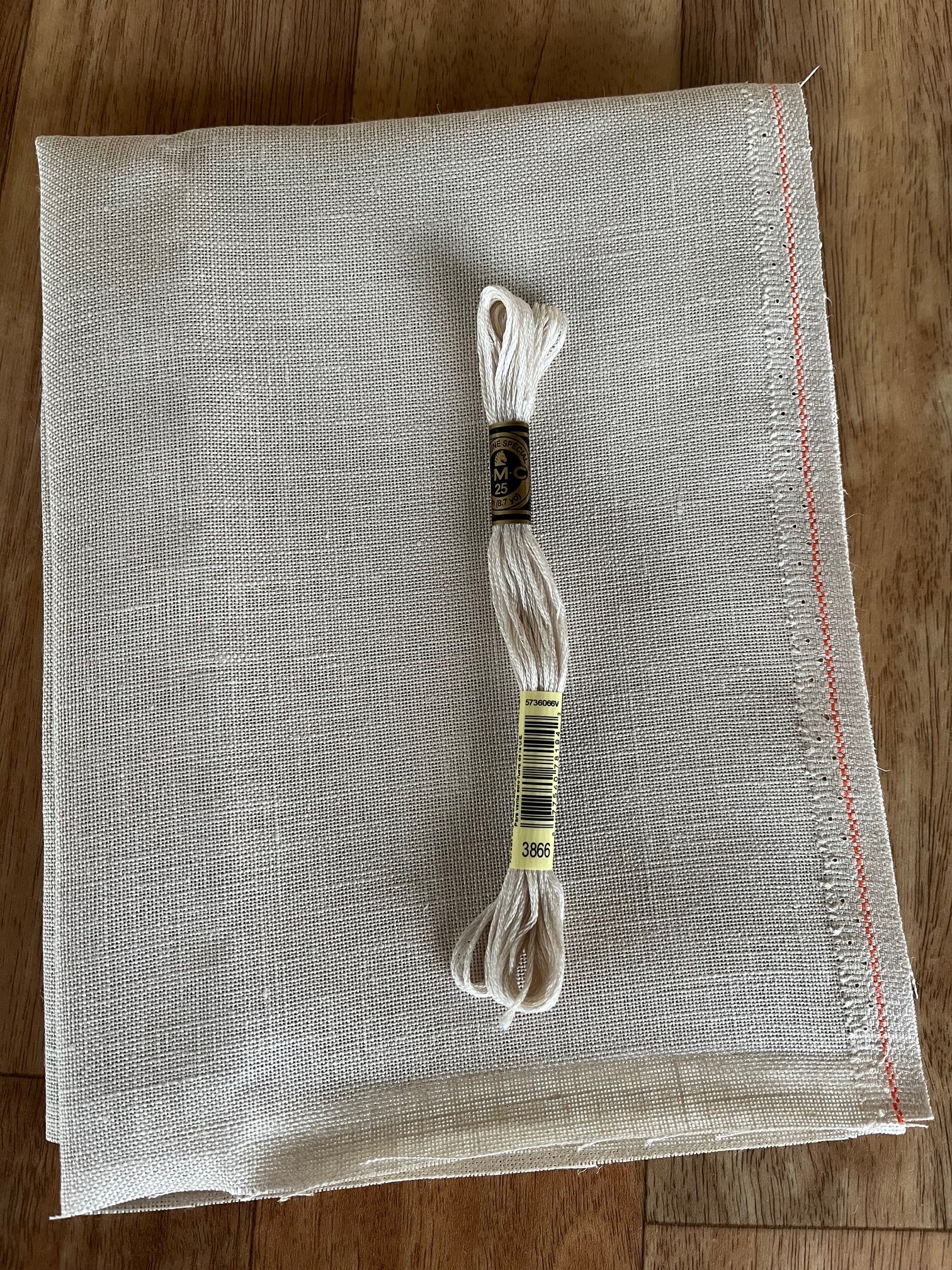 Platinum Linen 32 Count Belfast Cross Stitch Cloth is similar to DMC 3866